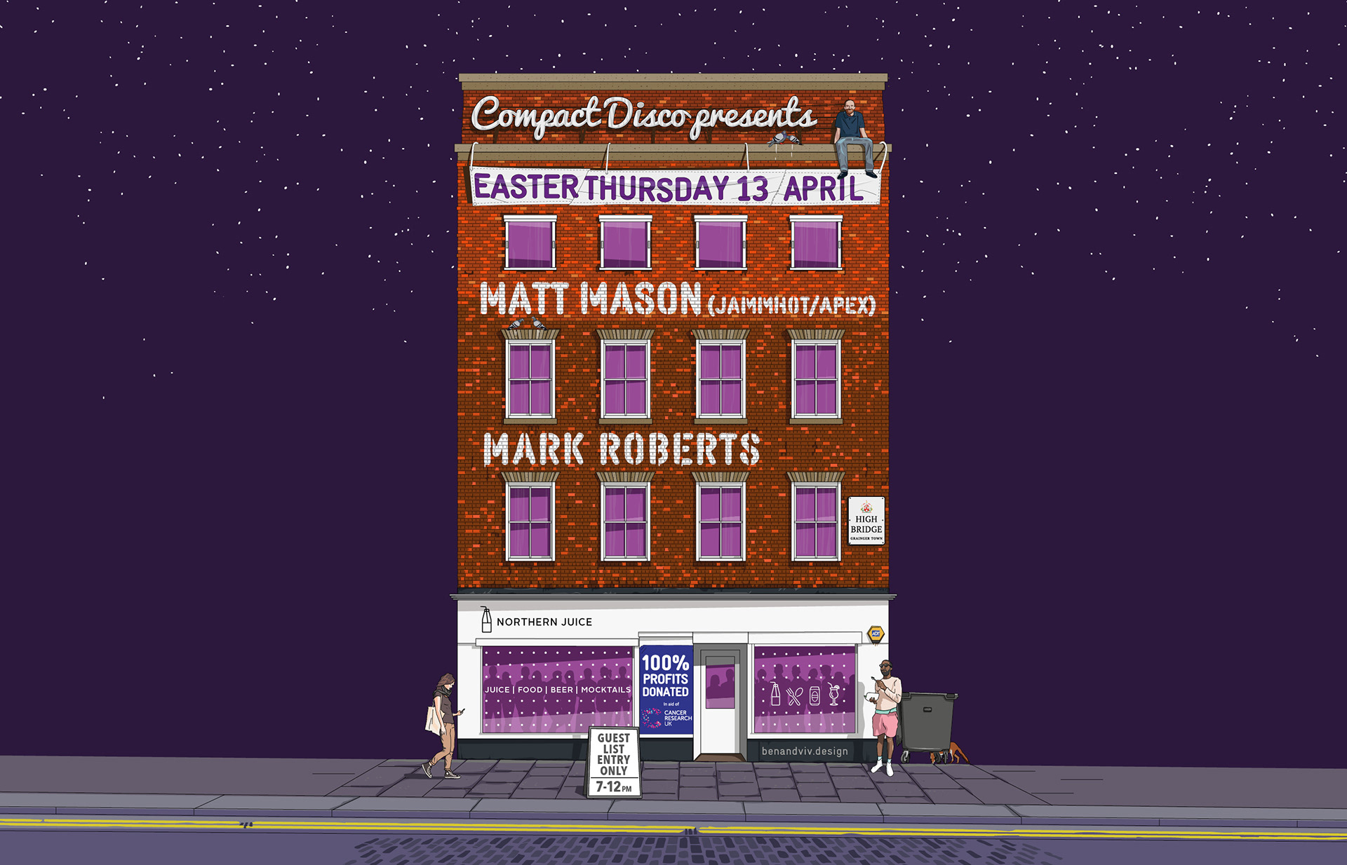 Our 2016 and 2017 illustrations for Compact Disco's Easter get-together in memory of our good friend Steven Robson.